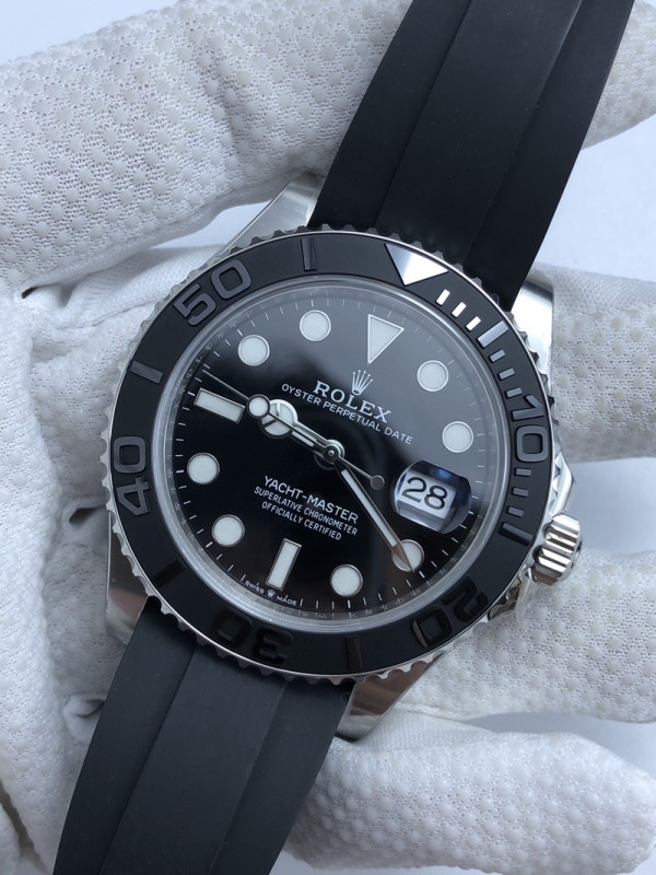 • (준비완료/특급배송/예상수령7일)NO.144/ 클린공장롤렉스 요트마스터 42 스틸 블랙다이얼 러버스트랩 클린